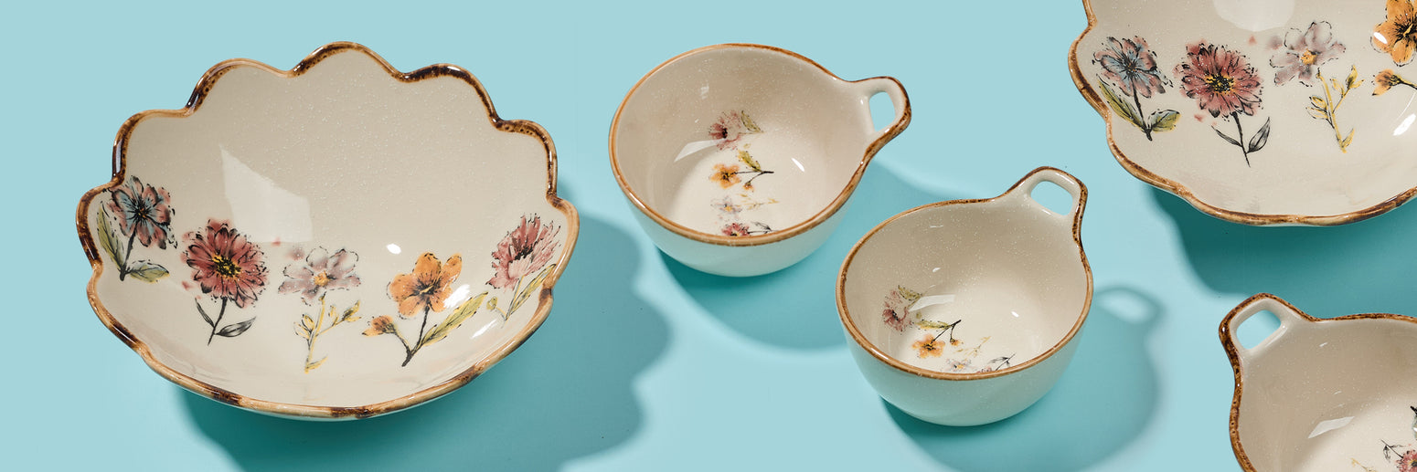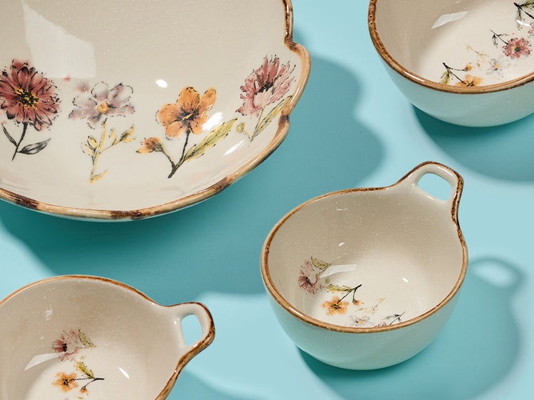 Vintage-Style Large Bloom Ceramic Tableware Set