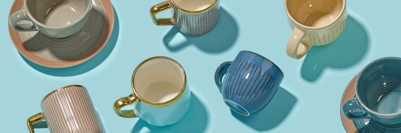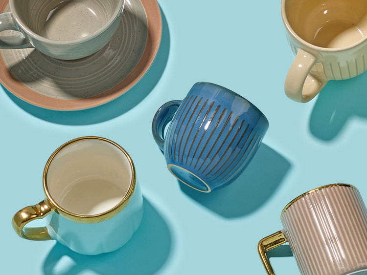 coffee Luxe Ribbed Ceramic Mug Set (6 Pieces)