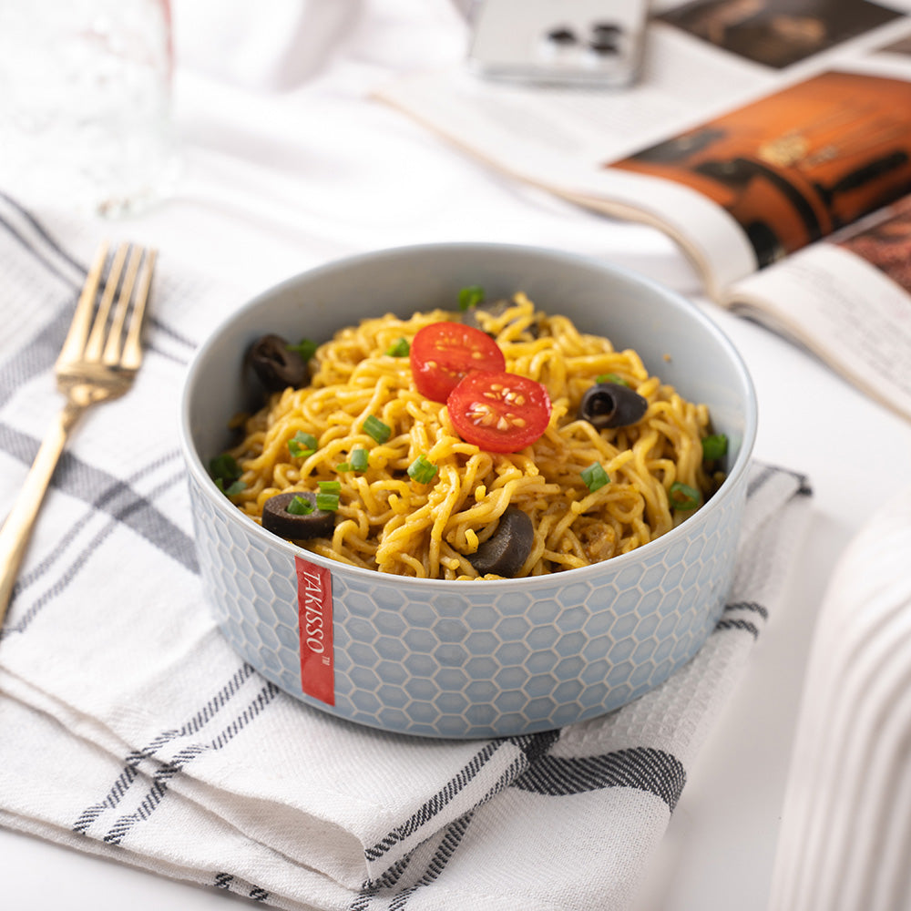 Add a touch of modern style to your dining table with this elegant 2-piece Blue Ceramic Bowl Set. Designed with a sleek honeycomb texture and a smooth glazed interior, these bowls perfectly blend function and sophistication. Ideal for serving salads, soups, noodles, pasta, or desserts, they bring a refined, contemporary charm to any meal.