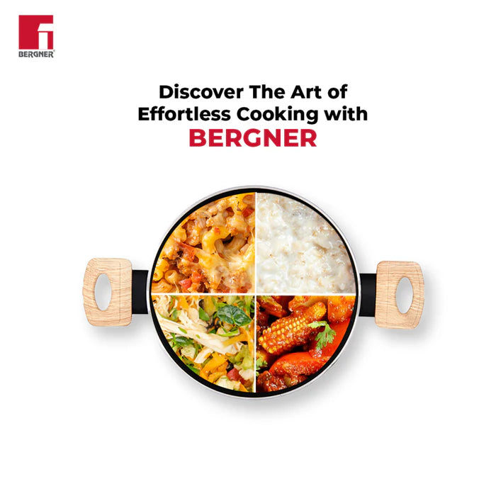 Serve and cook your favourite dishes with the Bellini Plus Aura 5-Layer Non-Stick Casserole. Designed with Greblon C3 5-layer non-stick coating, it supports healthy low-oil cooking and long-lasting durability. The heavy-gauge pressed aluminum body ensures fast, even heat distribution, while the PFOA-free, food-safe surface and soft-touch cool handles provide safe, comfortable handling. Compatible with induction and all major cooktops, it’s perfect for everyday cooking and serving.
