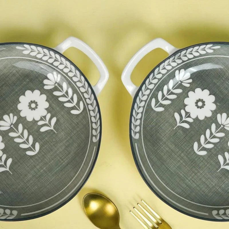 Serve in style with the Tachiso Rana Floral Porcelain Platters. Featuring a soft greenish grey color and elegant floral design, this set of 2 platters is perfect for presenting snacks, starters, desserts, and festive dishes. Durable, classy, and versatile—ideal for everyday meals or special occasions.